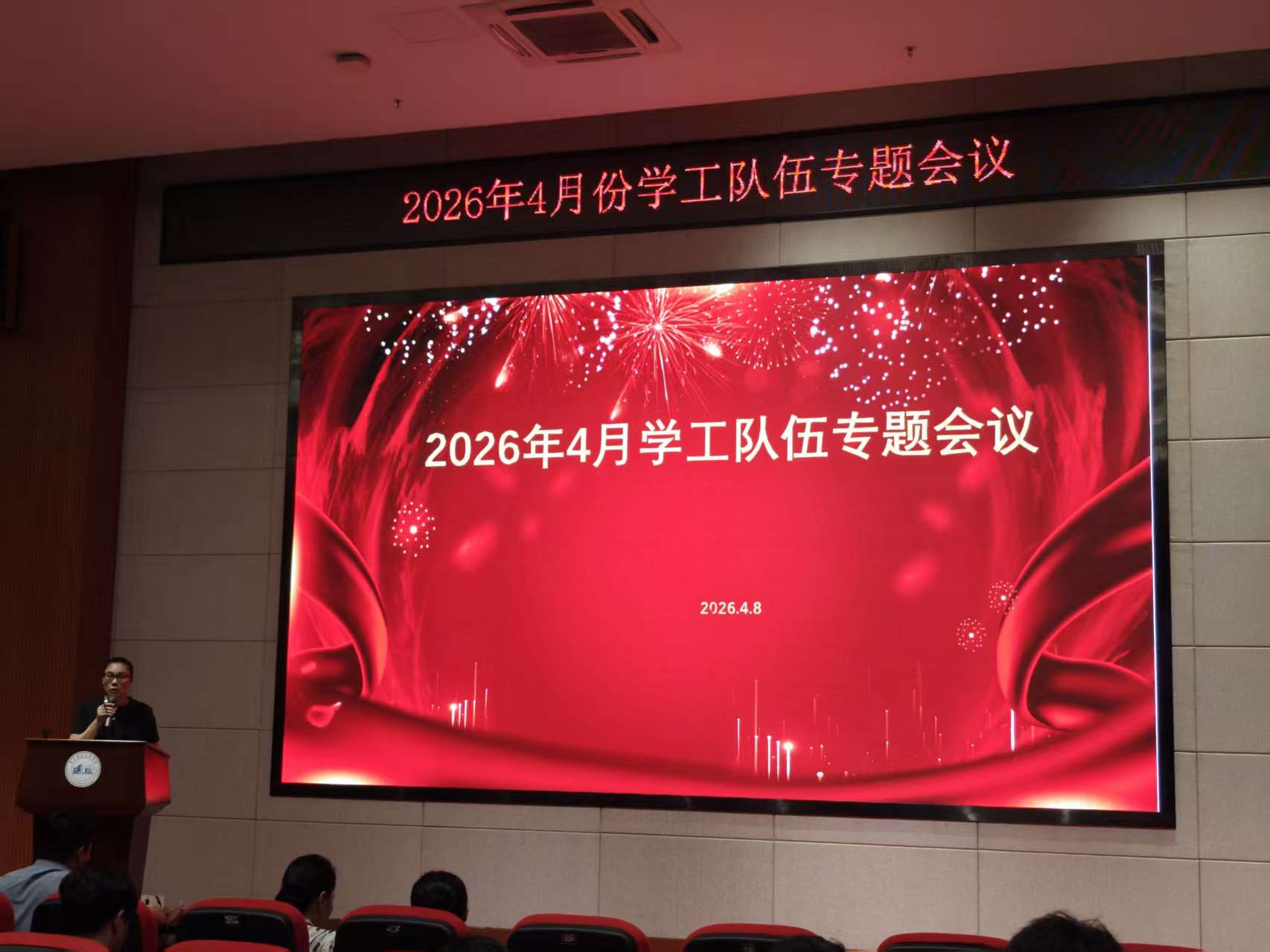2026年4月8日上午10:30,我校召开学生工作专题会议,围绕学生工作部分工调整、文明宿舍建设评比、素质拓展学分制度推进、社团指导老师招募及制度体系建设等重点工作进行部署。会议由学生处组织,陈钦副校长出席会议并作总结讲话,各二级学院书记、全体学工人员参会。