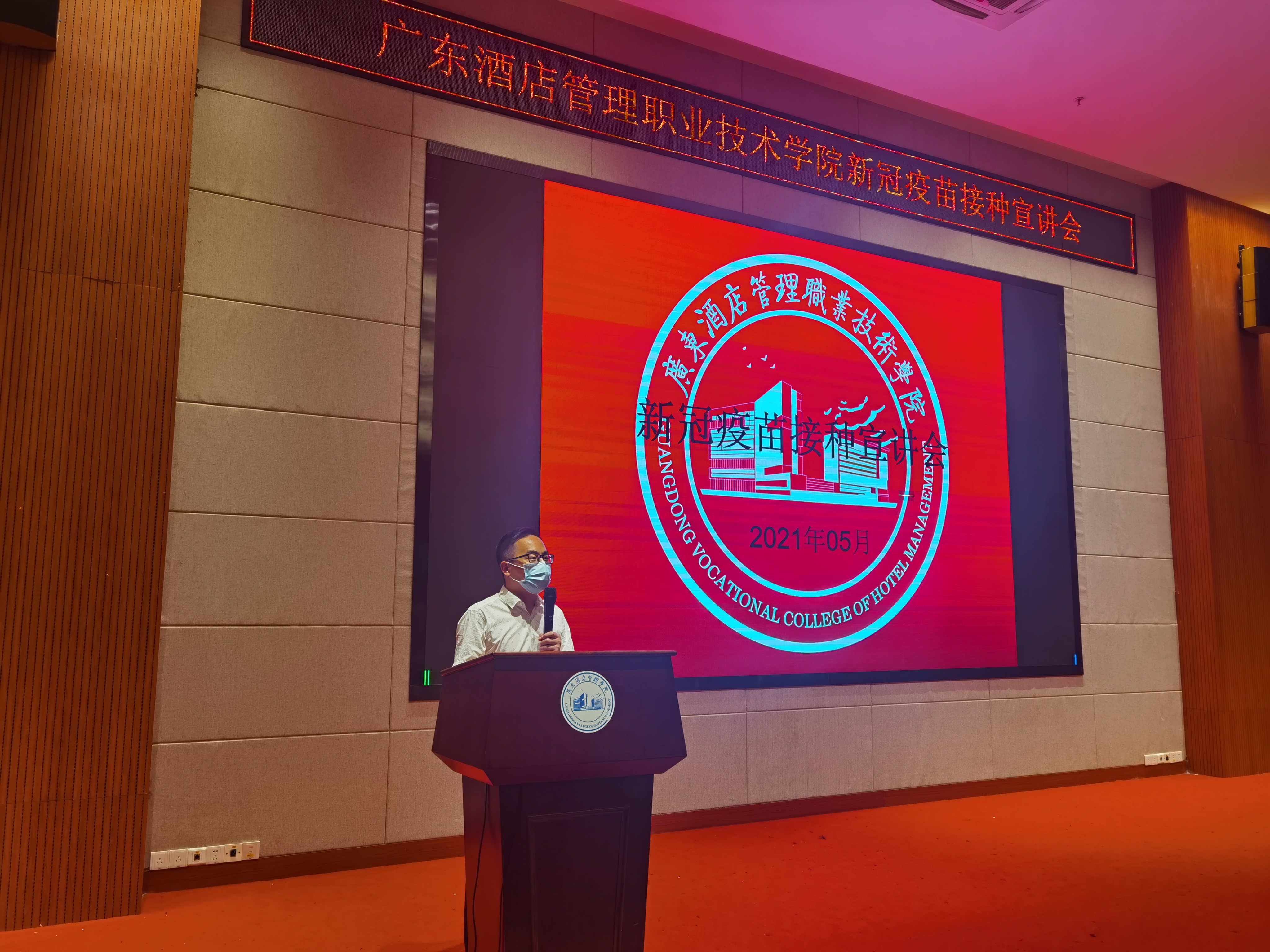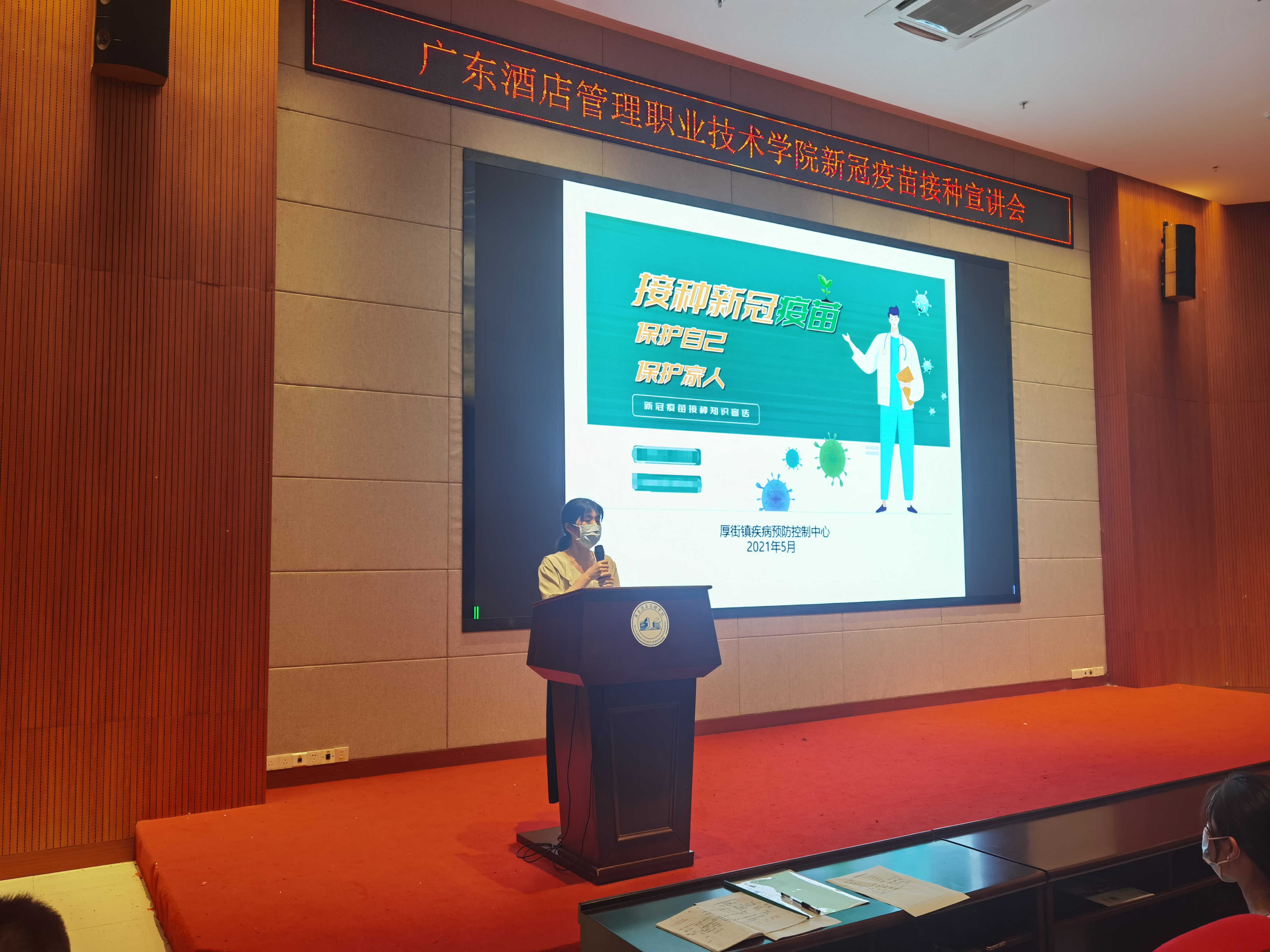为进一步引导我校师生正确认识疫情防控和新冠疫苗接种工作的重要性,保证校园内公共卫生防疫安全。5月12日下午,学生处在学术报告厅举办广酒学院新冠疫苗接种宣讲会。本次宣讲由厚街镇疾病预防控制中心医生刘春玉和陈翠芬主讲,学生处处长王克明主持,学校各院系未接种新冠疫苗师生参加了此次宣讲会。
