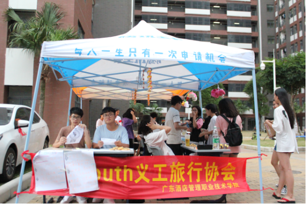 义工旅游协会于4月11日在学院食堂前开展了一场“文明旅游进校园”的公益宣传活动。