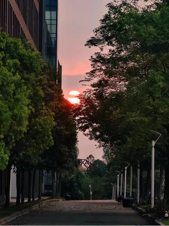 走出宿舍大门在阳光散落的大地上绿意盎然的校道里开启广酒人美好开端